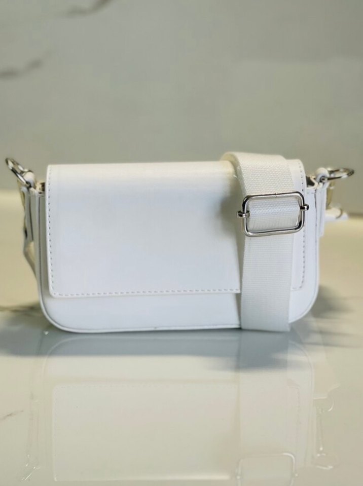 Beyaz deri, tasarıma sahip kadın çantası. Minimalist ve modern klasik tarzıyla günlük kullanıma uygundur. ✨ Hiç kullanılmadı. Deforme vs yok. Askı boyu : 125cm