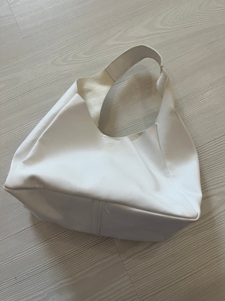 Minimalist tasarımlı beyaz deri kadın çanta, günlük kullanım için zahmetsiz şıklık sunar. Çağdaş, sade ve desensiz yapısı vardır.