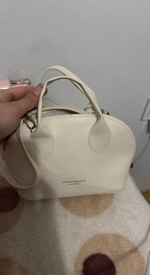 Pastel tonlarda beyaz deri kadın çanta, sade tasarımlı ve "FASHONABAGS" logosuna sahip. Trendy casual tarzlar için zahmetsiz şıklık sunar.