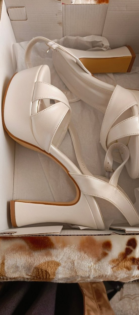 Beyaz deri malzemeden, tokalı kayışlı platform topuklu, minimalist ve çağdaş tasarıma sahip, düğün için uygun abiye ayakkabı. Desensiz ve şık.