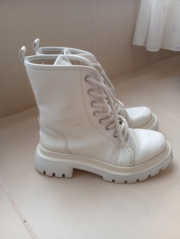 Beyaz deri kadın botları, platform topuklu ve minimal tasarımlı olup günlük kullanıma uygun, şık ve rahat bir stil sunar.