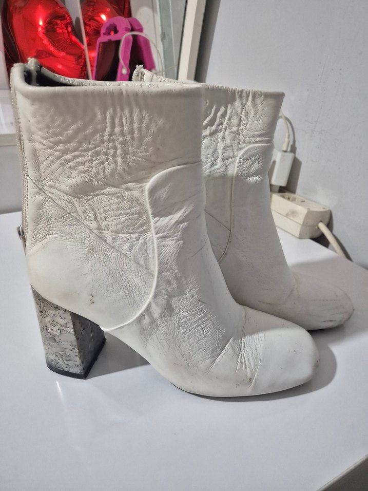 Beyaz Deri Tokalı Kadın Bot