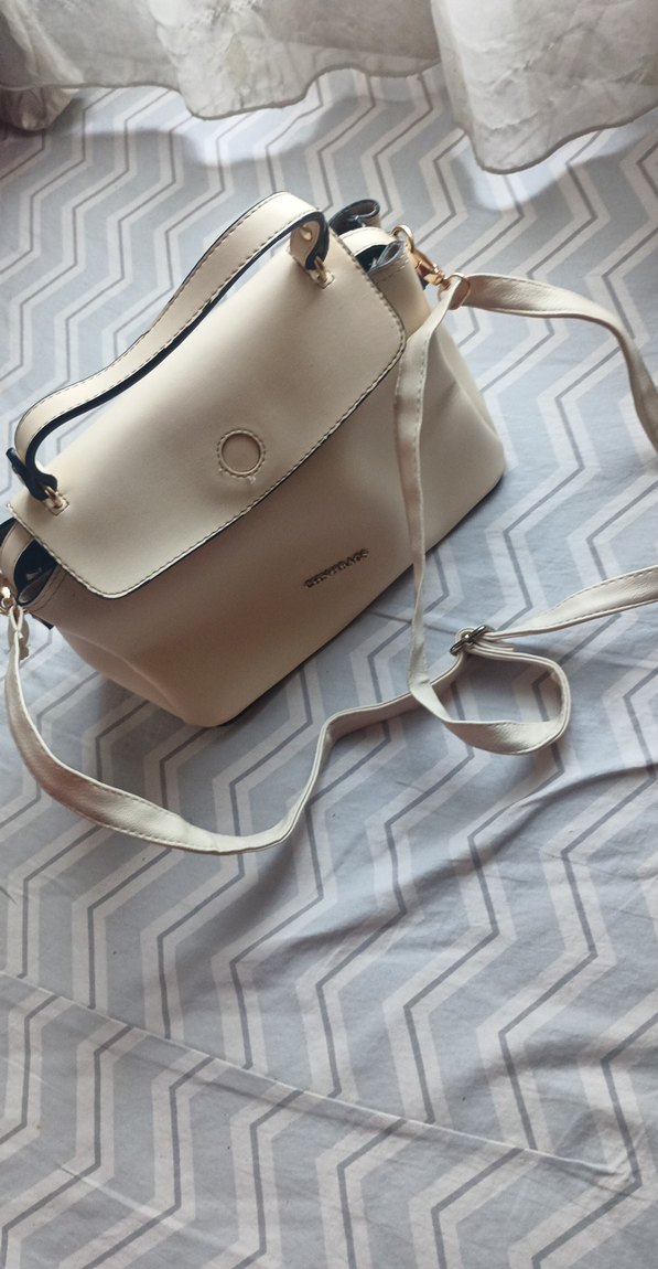Beyaz Deri Tokalı Kadın Çanta