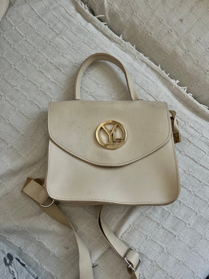 Beyaz Deri Tokalı Kadın Çanta