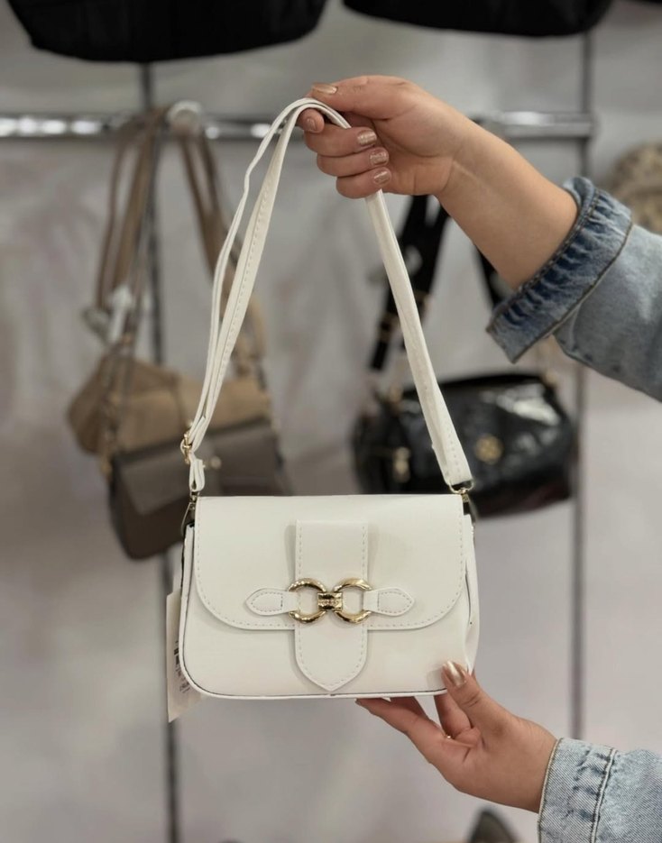 Beyaz deri tokalı ve yılan desenli kadın çanta, modern klasik stilde, Paris esintili şık bir tasarıma sahiptir. Günlük kullanım için uygundur.