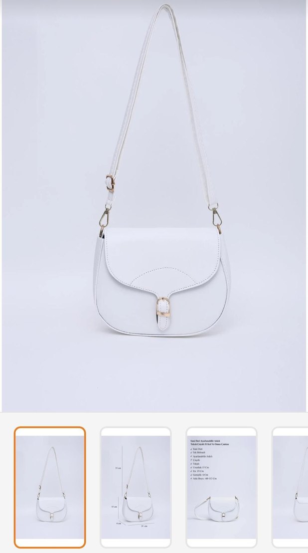 Beyaz deri malzemeden üretilmiş, tokalı kapamalı kadın çantasıdır. Minimalist ve modern klasik tasarıma sahiptir, günlük kullanıma uygundur.