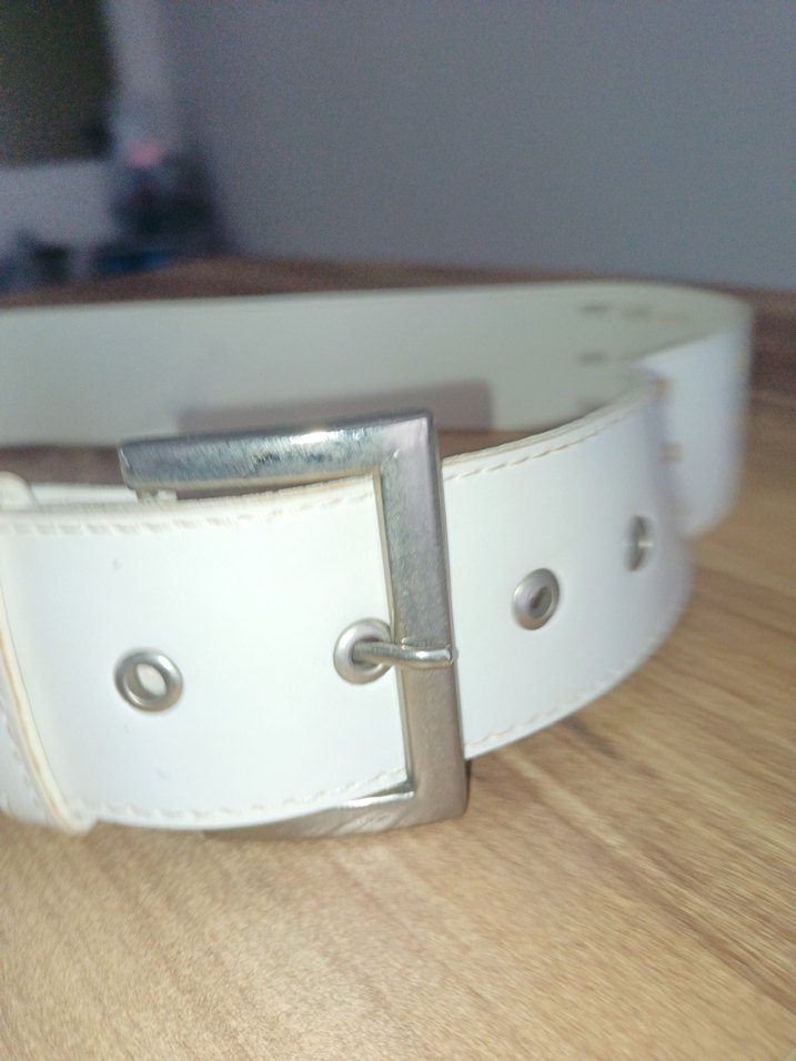 Bu beyaz deri kadın kemer, metal halkalar ve tokalı tasarımıyla minimalist ve şık bir görünüm sunar. Trend belirleyiciler için ideal. ⚪