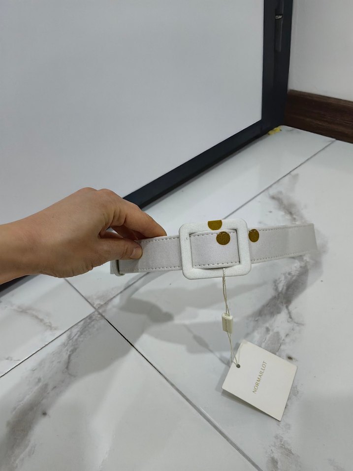 Beyaz Deri Tokalı Kadın Kemer