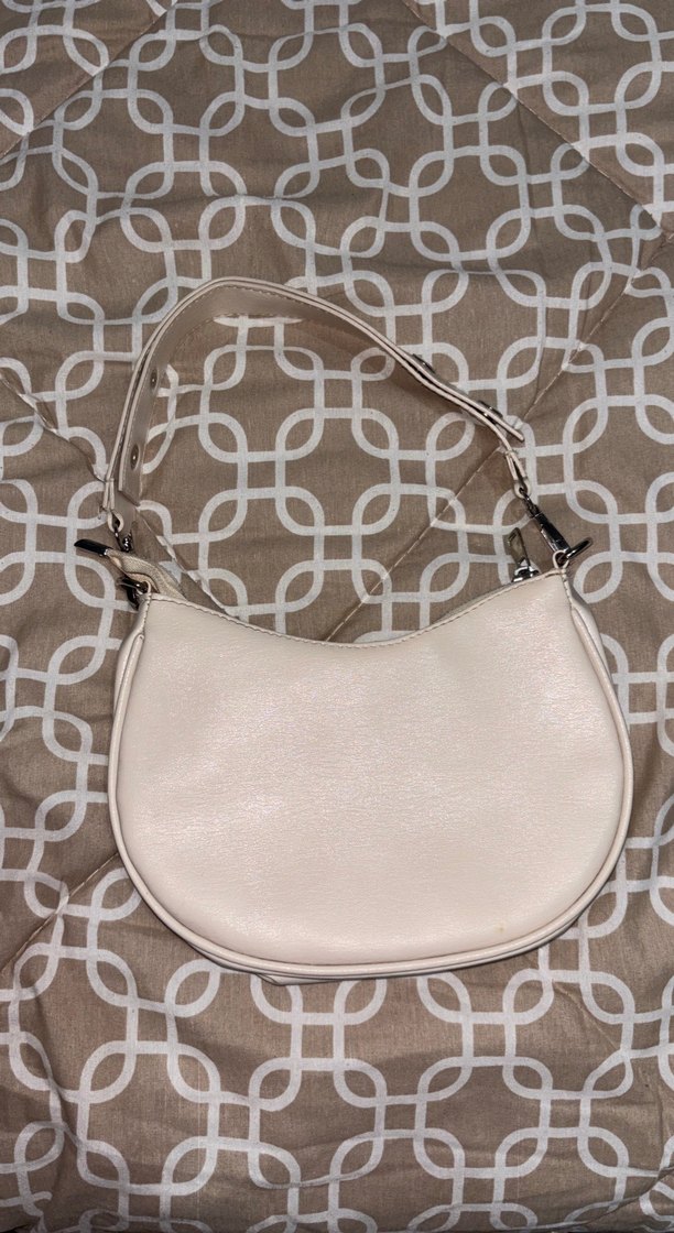 Beyaz deri kadın çanta, tokalı askı ve yılan desenli dokusuyla trend sokak stili için uygun.