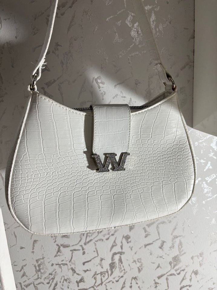 Beyaz Deri Yılan Desenli Kadın Çanta
