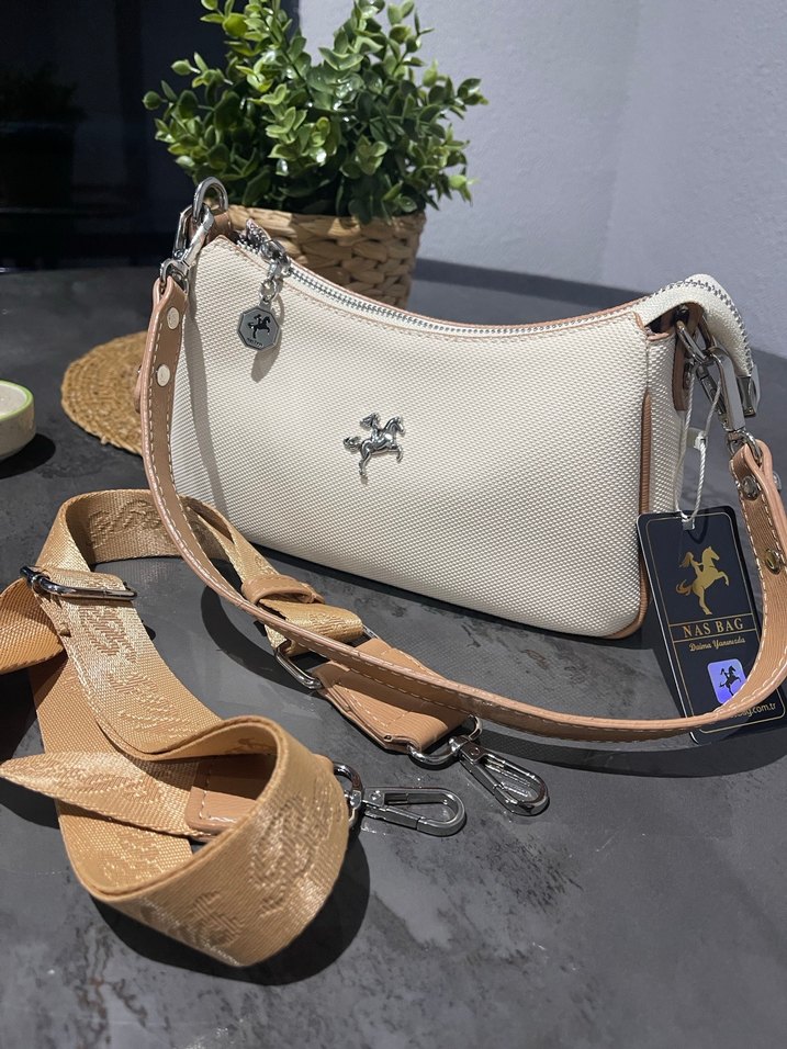 Beyaz deri yılan desenli çanta, kemerli askısıyla modern klasik ve trend bir görünüm sunar. Günlük kullanıma uygun, Paris tarzında.