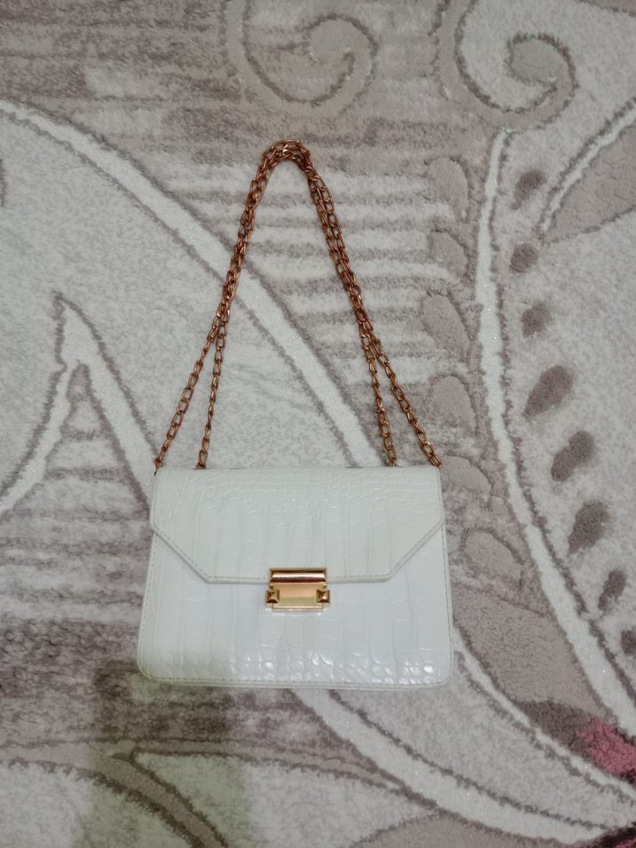 Beyaz Deri Zincir Detaylı Kadın Çanta