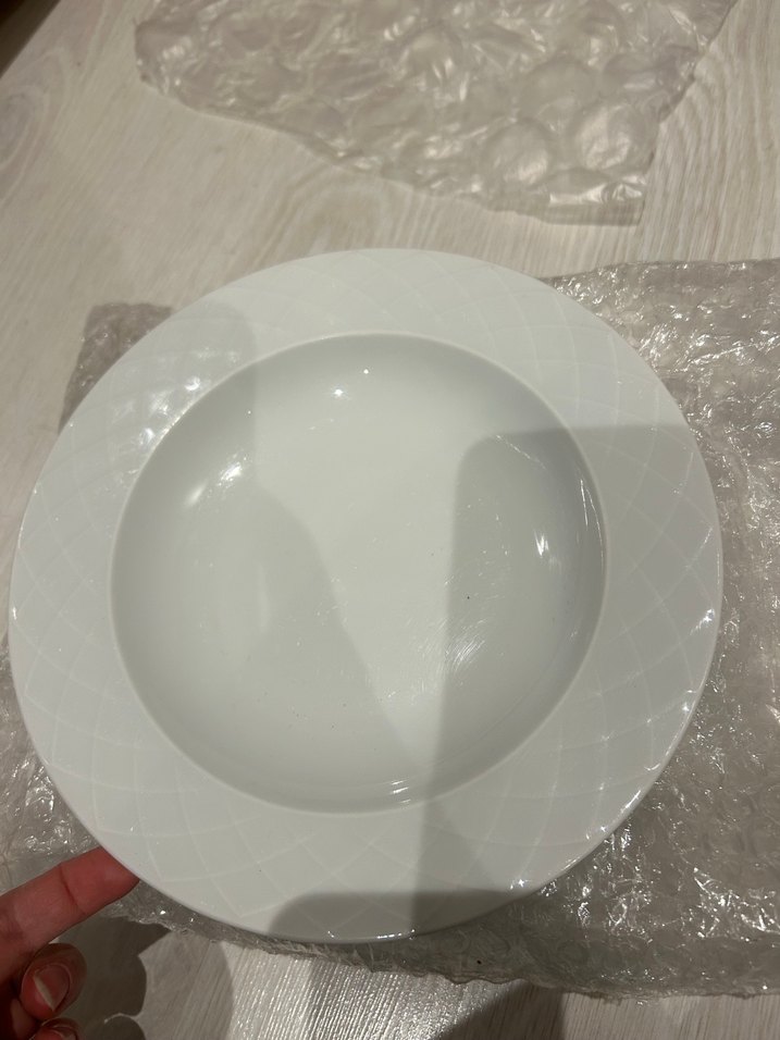 Beyaz, hafif desenli kenarıyla derin yemek tabağı, çorba veya güveç sunumu için uygundur.6 adet
