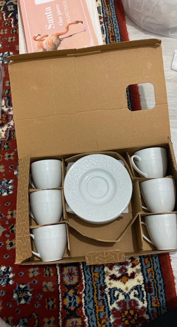 Beyaz Desenli 6'lı Fincan ve Tabak Seti
