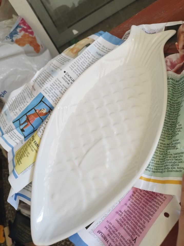 Beyaz Desenli Balık Şekilli Tabak