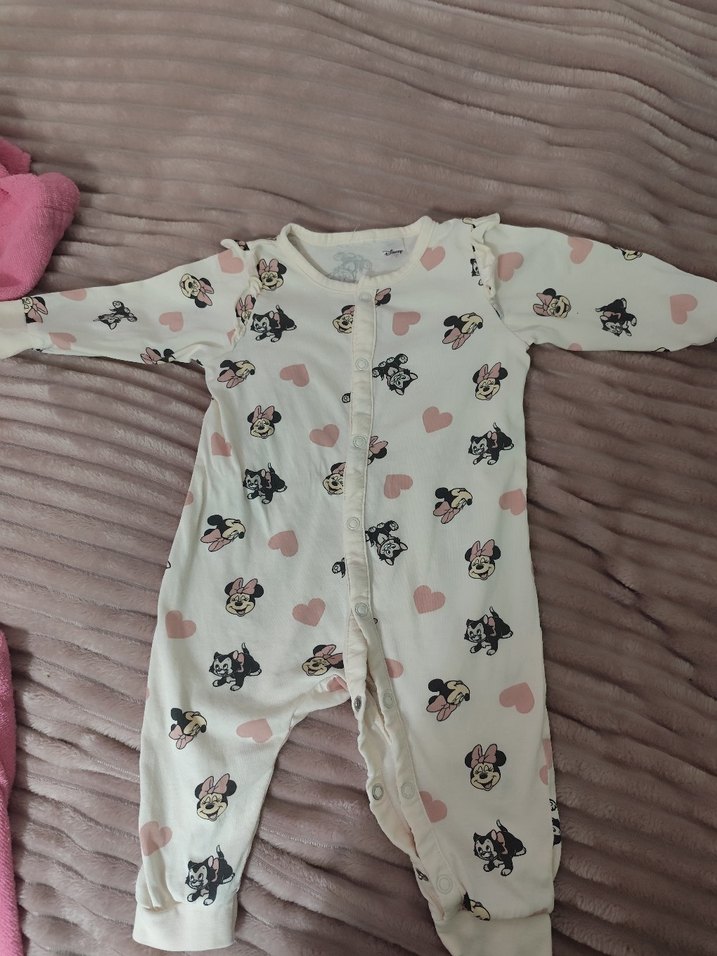 Beyaz renkli, pastel tonlarda desenli, düğmeli bebek kız tulumu. Yumuşak ve rahat kumaştan üretilmiştir.