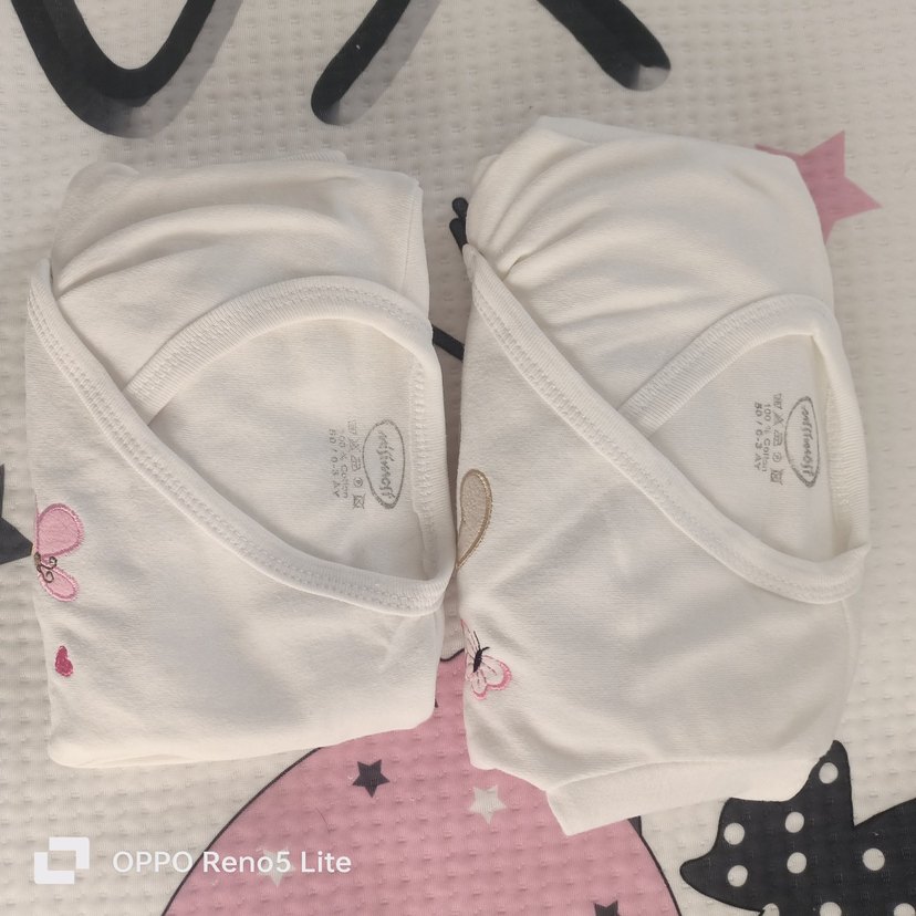 Beyaz, açık renkte, yumuşak dokulu bebek takimi Desenli tasarım, rahat kullanım sağlar.