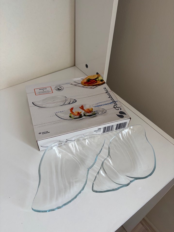 Paşabahçe dalgalı tasarıma sahip cam tabak seti, atıştırmalık veya tatlı servisi için uygundur. Hiç kullanılmadı