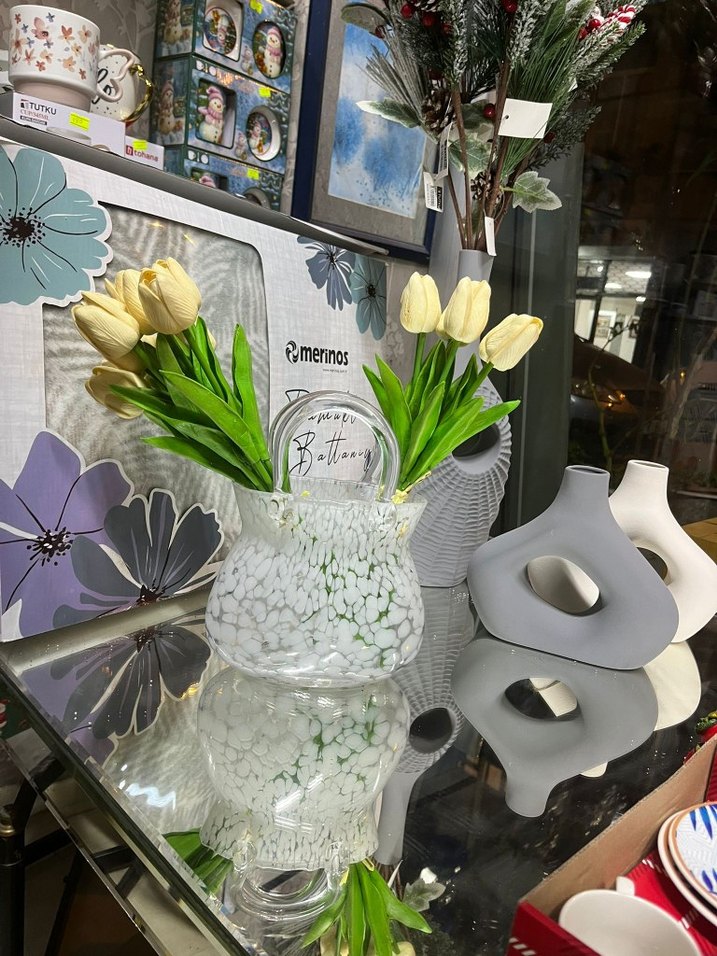 Beyaz Desenli Cam Vazo