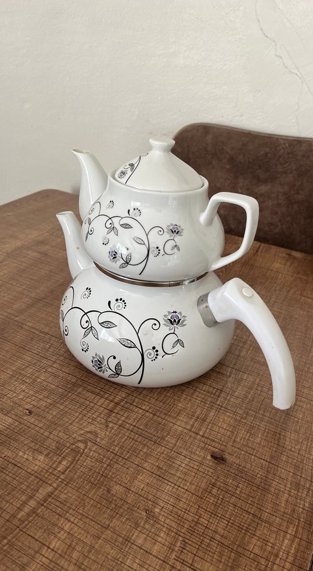Beyaz Desenli Çaydanlık Seti