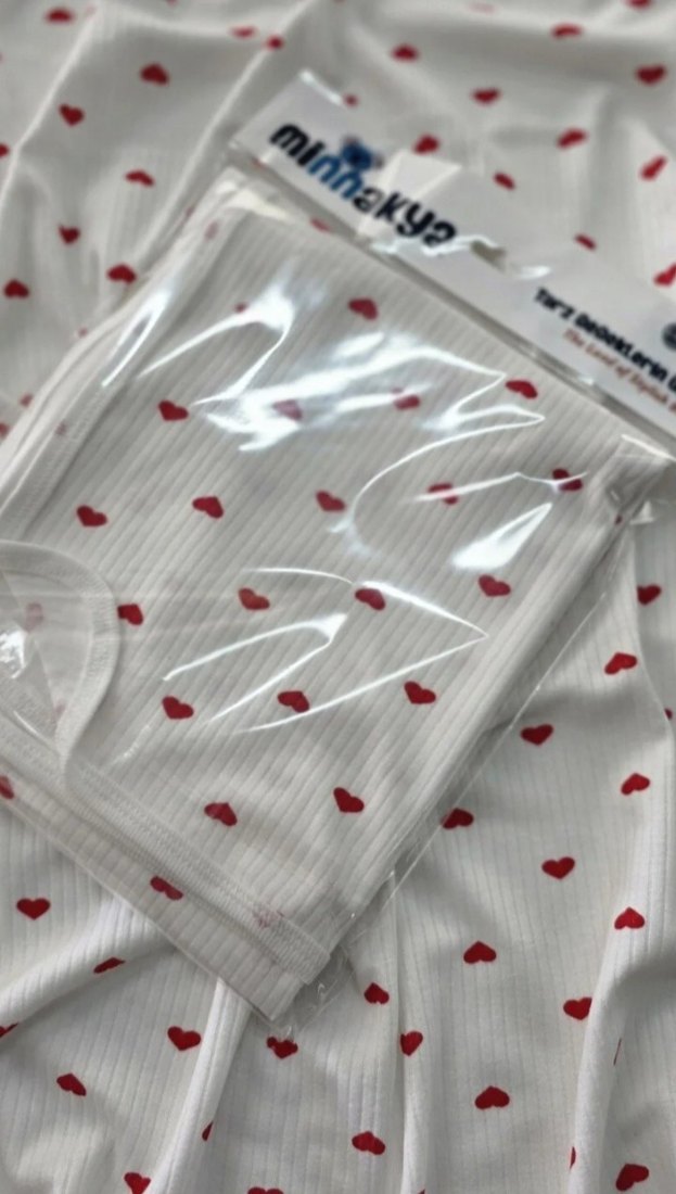 Beyaz sentetik kumaştan, küçük kırmızı kalp desenli çocuk çarşafı ve yatak örtüsü, yumuşak ve rahat bir yüzey sunar. ❤️