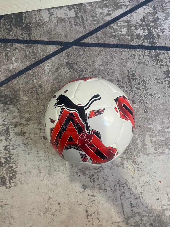 Dayanıklı seramik malzemeden beyaz, renkli desenli ve Puma logolu futbol topu. Spor ve athleisure tarzına uygun ⚽