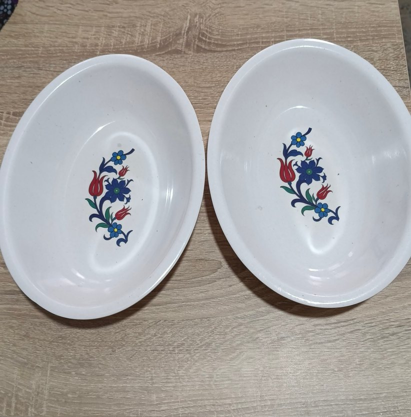 2 adet melamin salata tabağı.kullanilmadi.olculeri resimlerde.buyuk boydur.kendine özgü içinde lekeleri vardir.