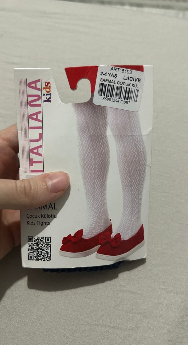 2-4 yaş çocuklar için yumuşak sentetik kumaştan, beyaz ve renkli desenli külotlu çorap.