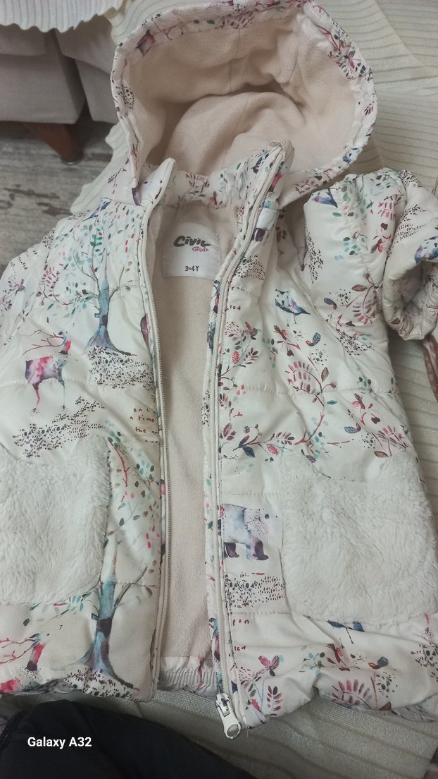 Beyaz Desenli Kız Çocuk Kürklü Mont(3-4) yas