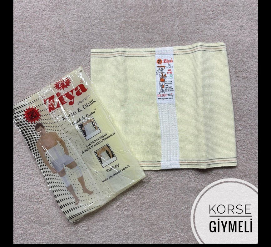 Beyaz renkli, desenli ve mini boy kısa korse, vücuda oturan kesimiyle destek sağlar. Üzerinde 'KORSE GİYMELİ' etiketi bulunur. Unisexdir