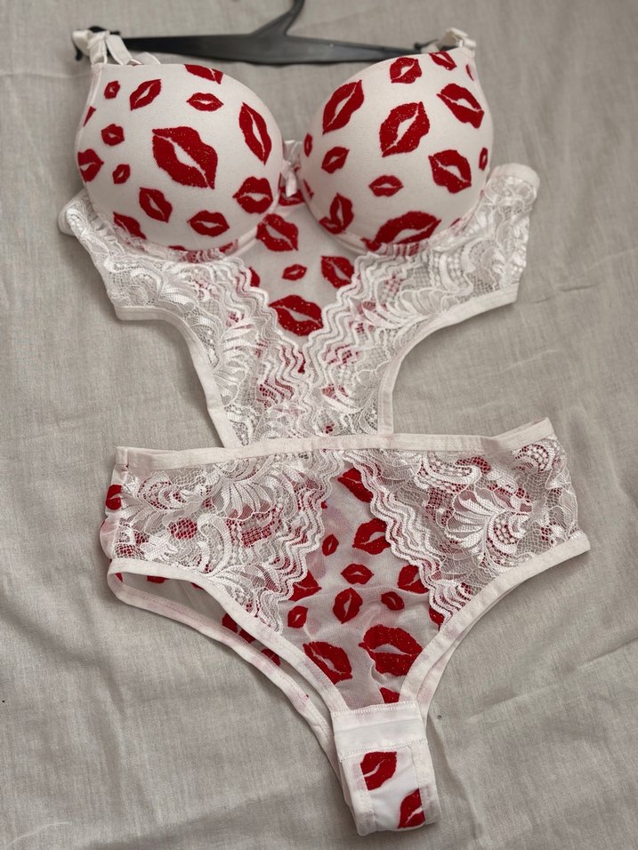 Kırmızı dudak desenli beyaz sütyen ve külot takımı, dantel detaylı, kısa ve modern tarzda, rahat bir his sunar.