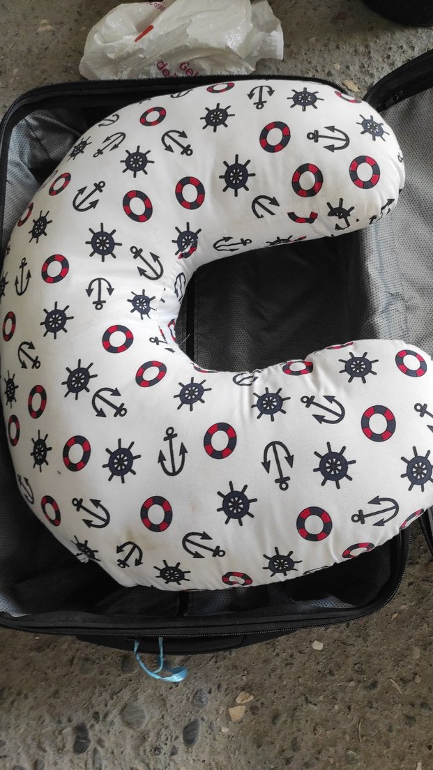 Beyaz zemin üzerine deniz temalı renkli desenlerle süslenmiş, hamilelik ve emzirme için destek sağlayan yumuşak yastık. ⚓