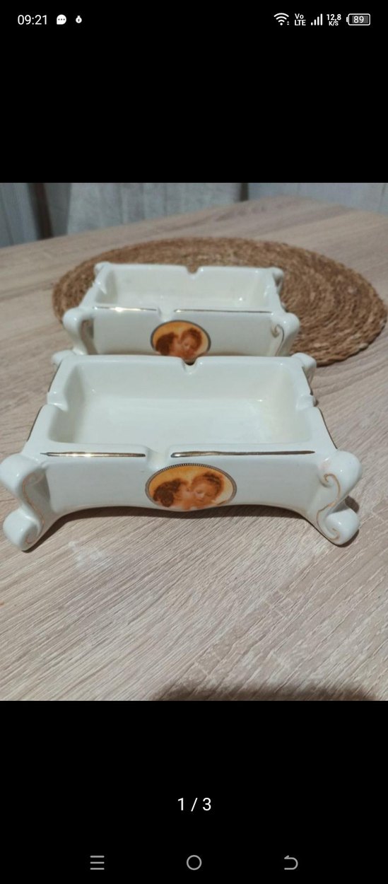 Beyaz seramik küllük, geleneksel tarzda, hafif renk tonunda ve baskılı vintage motifli, yükseltilmiş ayaklara sahip.