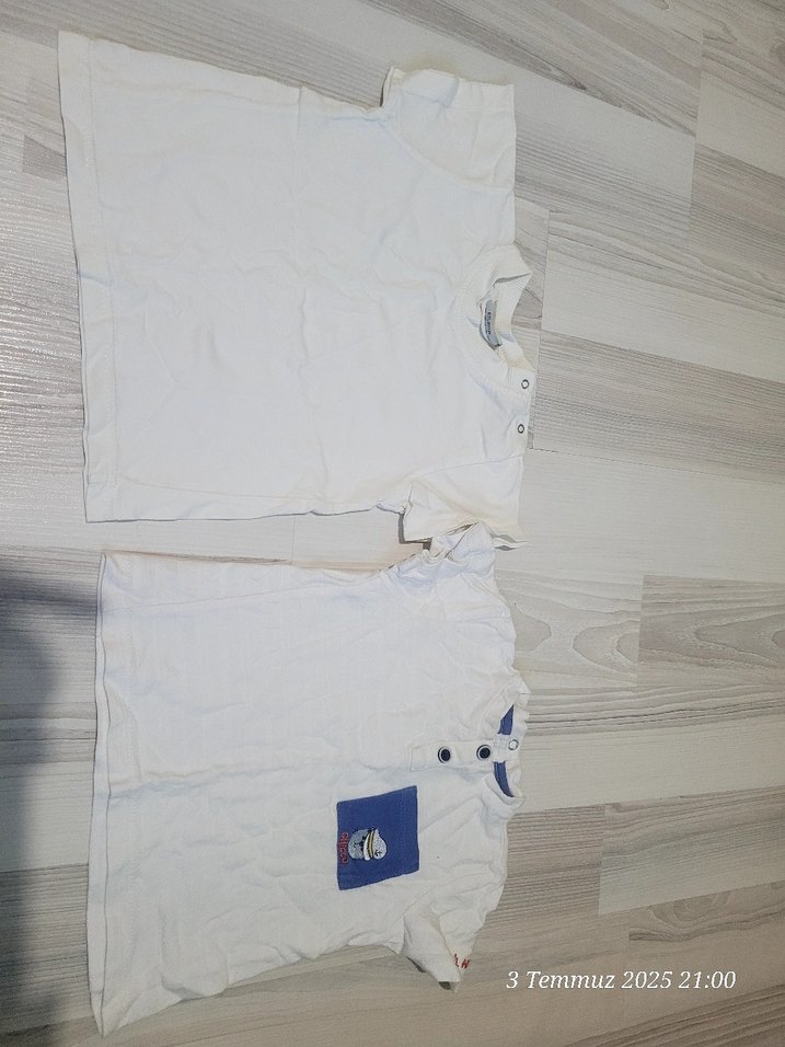 Yumuşak kumaştan, beyaz ve desensiz çocuk kısa kollu
