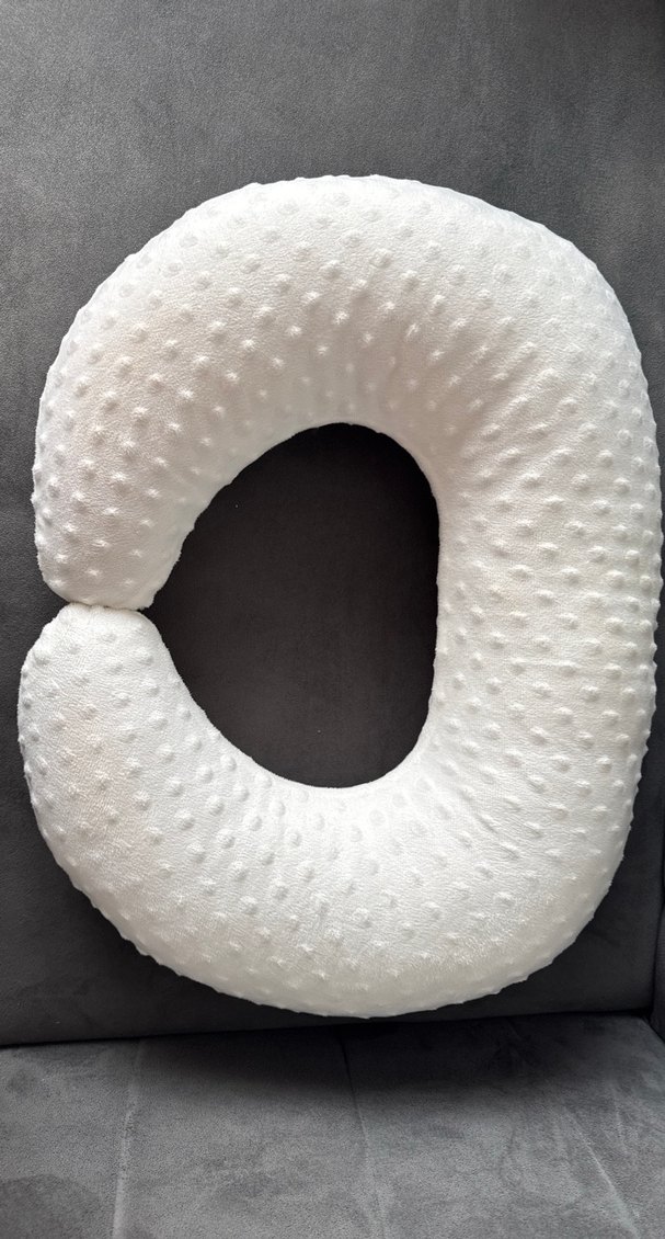 Yumuşak dokulu beyaz emzirme ve hamilelik yastığı, rahatlık ve destek sağlar. Ergonomik şekliyle konfor sunar.