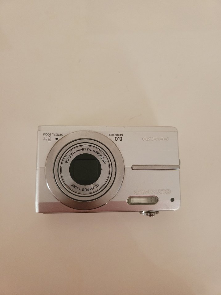 8.0 MP çözünürlüklü beyaz dijital kamera, gri detaylara sahip. Kompakt tasarımıyla günlük fotoğrafçılığa uygun.