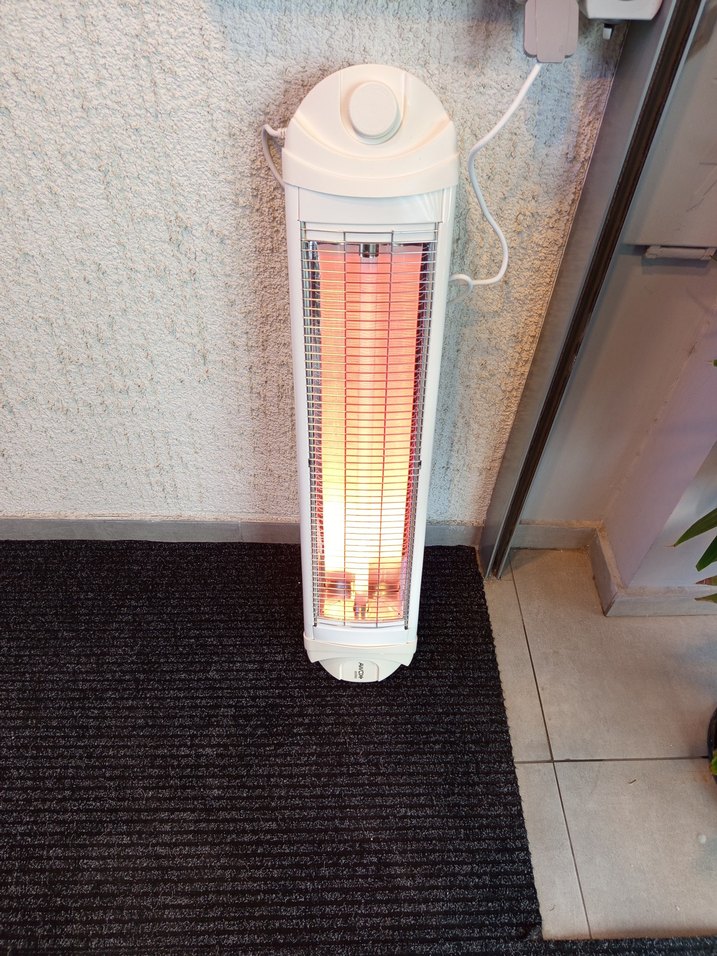 Işıklı ısıtma elemanına sahip beyaz dikey elektrikli ısıtıcı, iç mekan kullanımı için uygundur.