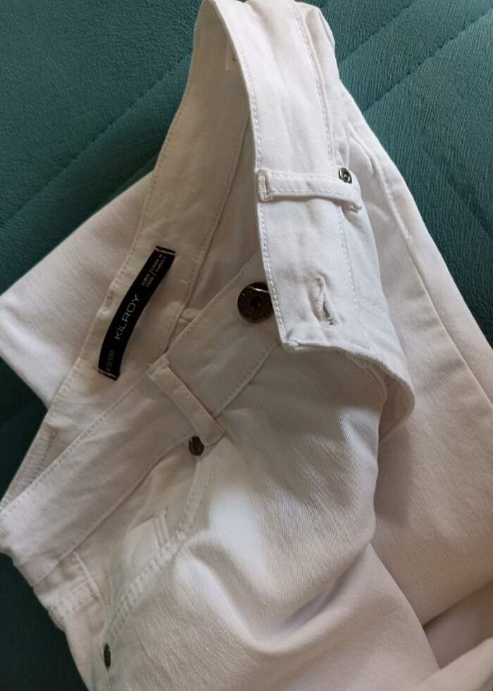 Beyaz dizleri yırtık denim Jean pantolon.Ürğn bir defa kulanılıp yıkanmıştır.