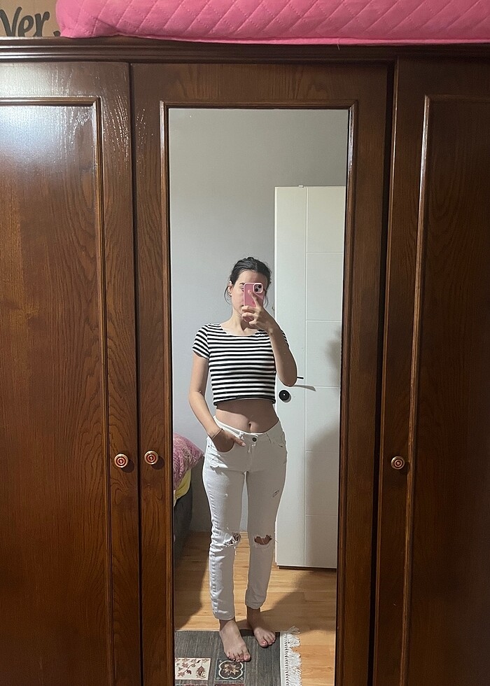 Hiçbir kusuru, yırtığı yok. Ayrıntılı çekmeye çalıştım. Modeli ve malı gerçekten kaliteli ama belden bana olmuyor
