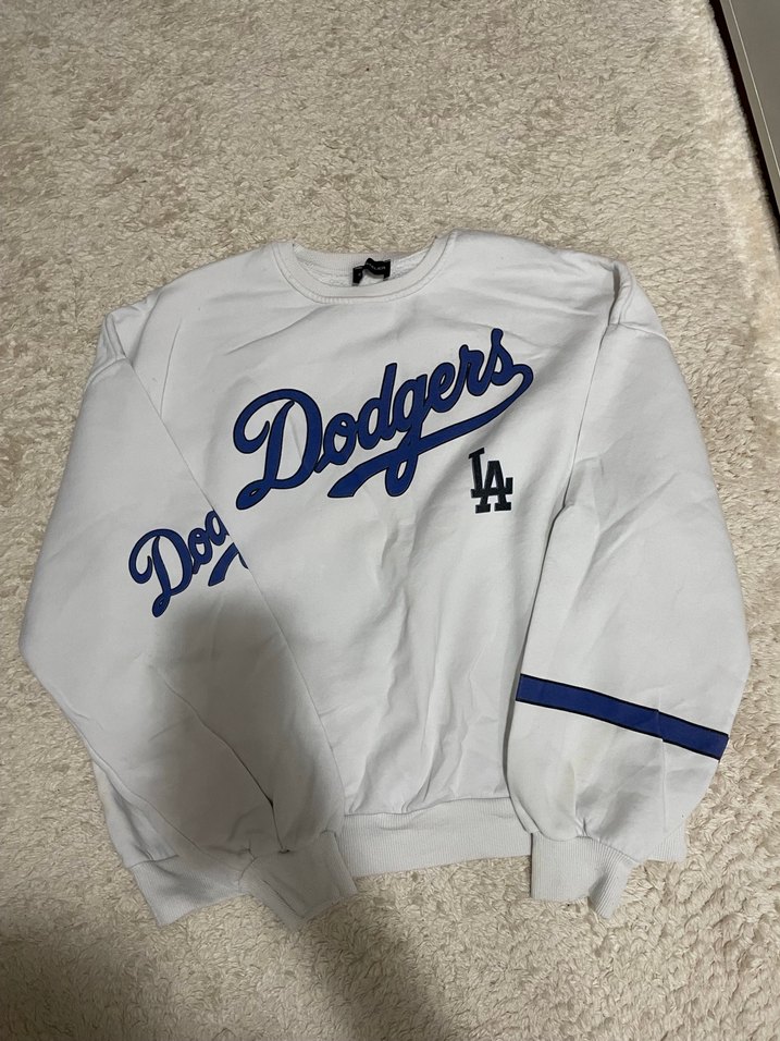 Beyaz, rahat kesim ve bisiklet yaka uzun kollu sweatshirt. Mavi Dodgers baskısı ve kollarda mavi şerit detayı bulunur. Yumuşak ve sıcak kumaştan üretilmiştir. ⚾