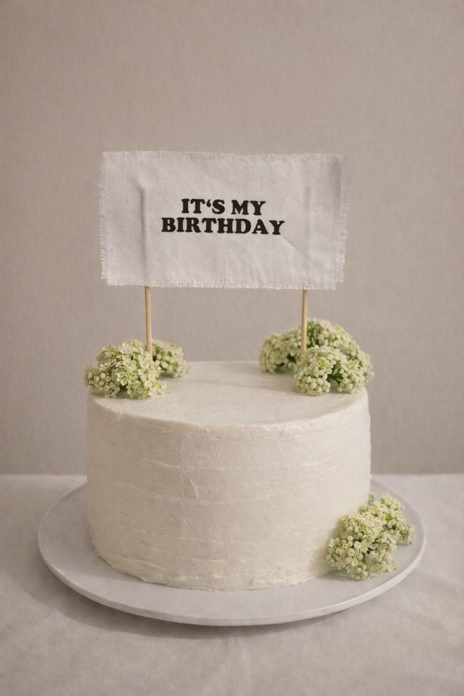 Beyaz renkte kumaş üzerine "IT'S MY BIRTHDAY" yazılı pasta süsü. Gerçek ilandır. Direkt satın alabilirsiniz.