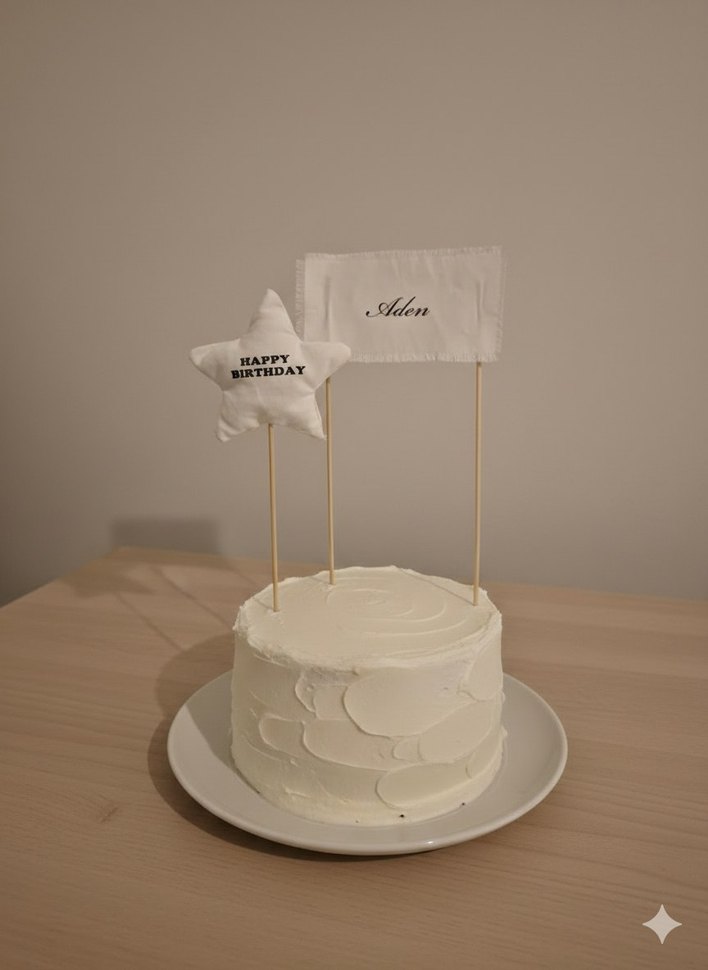 Beyaz pastel renklerde, 'HAPPY BIRTHDAY' yazılı yıldız ve 'Aden' yazılı dikdörtgen bayraklı doğum günü pasta süsü. Gerçek fiyattır. İstediğiniz ismi yazabilirsiniz.