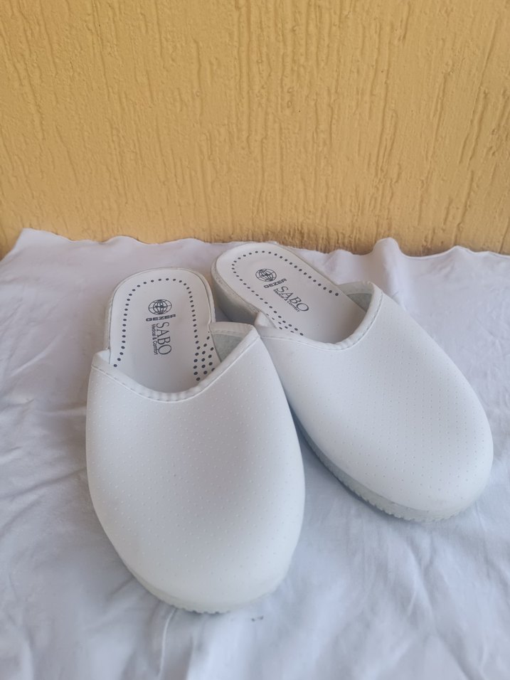 Beyaz renkte, dolgu topuklu ve sade tasarımlı kadın terliği Günlük kullanıma uygundur. Marka: SABO.