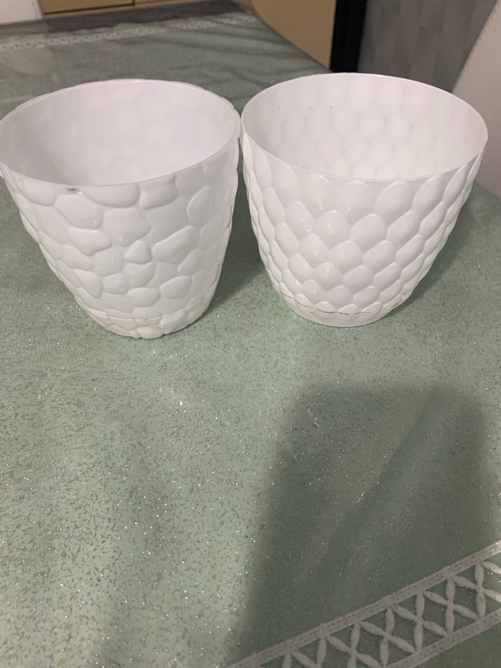 2 tane taş desenli plastik saksı bi karış boyunda