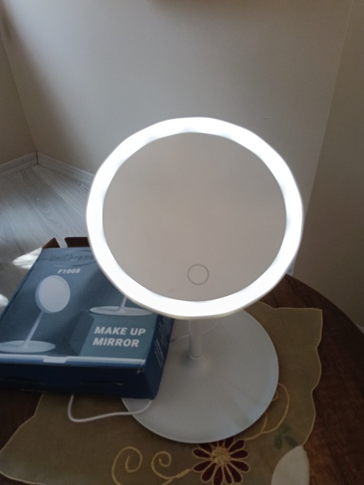 Ürün hiç kullanılmadı sıfır kutusunda USB li led ışıklı beyaz renk 3 tip ışığa sahip 90 derece dönebiliyor dokunmatik makyaj aynası, net yansıtma sağlar. Detaylı makyaj için uygundur.