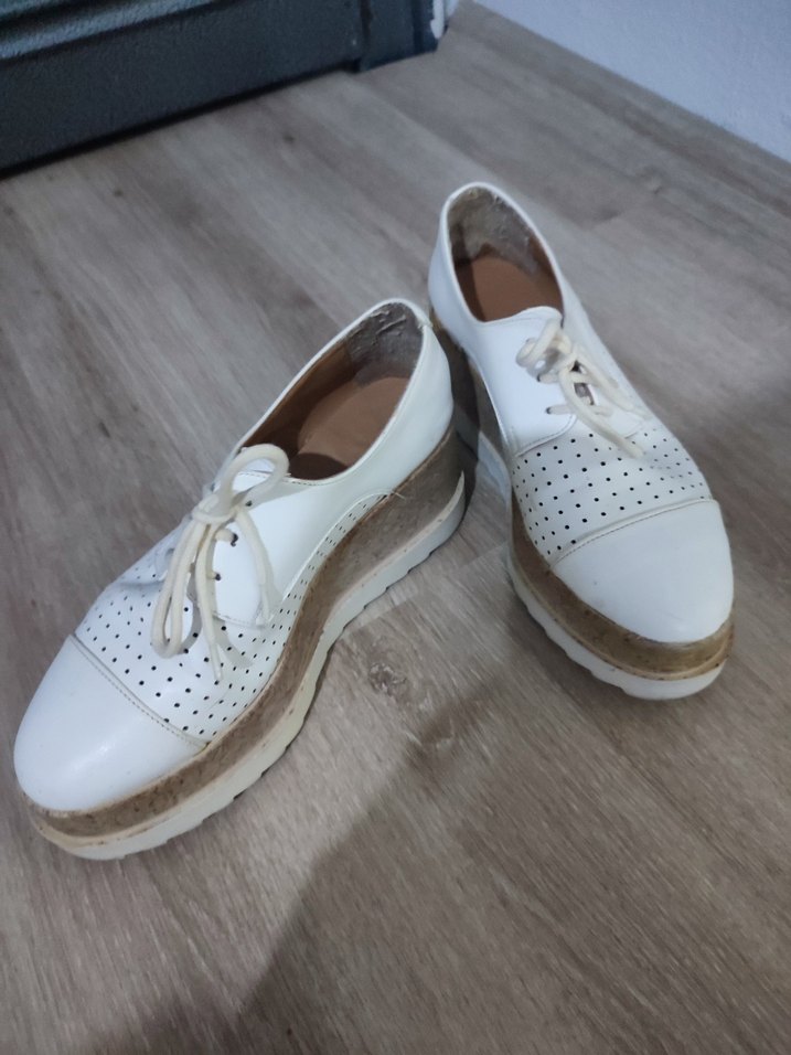 Beyaz Dolgu Topuk Kadın Oxford Ayakkabı