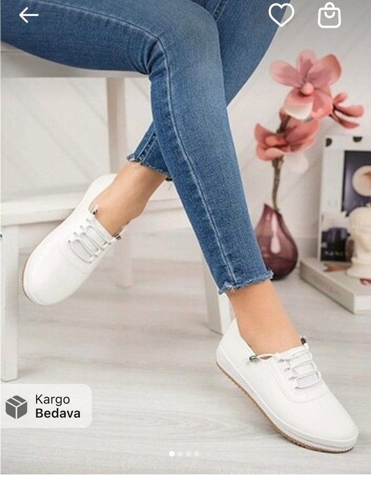 Beyaz, dolgu topuklu ve bağcıklı kadın spor ayakkabısı. Düz yüzeye ve kauçuk tabana sahip, günlük sokak stili için uygundur. bir kez giyildi 36.5 rahat alabilir