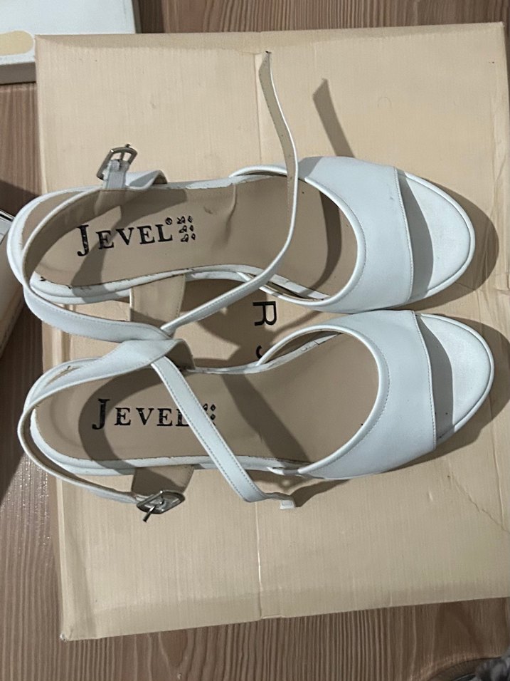 Beyaz dolgu topuklu kadın abiye gelin ayakkabısı, bir kez giyildi