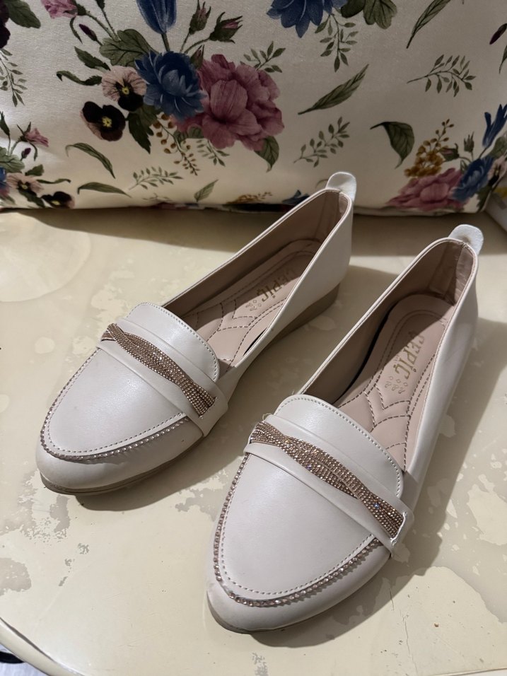 Beyaz dolgu topuklu, düz tasarımlı ve hafif yılan derisi desenli kauçuk kadın babetler, günlük kullanım için uygundur.