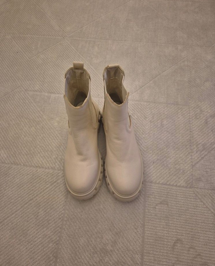Beyaz dolgu topuklu kadın botları, kauçuk malzemeden ve sade, minimalist tasarıma sahip. Günlük kullanıma uygun, trend sokak stili için ideal.Ürün hiç kullanılmamıştır.1 yıl önce Deichmandan alınmıştır.Tarzım olmadığı için satıyorum.